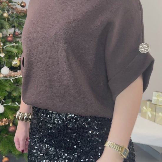 La maille est douce et confortable. Les demi-manches donnent une vraie liberté de mouvement. Les boutons dorés apportent la touche chic qui fait la différence. Un pull simple, moderne, facile à porter au quotidien comme pour sortir.