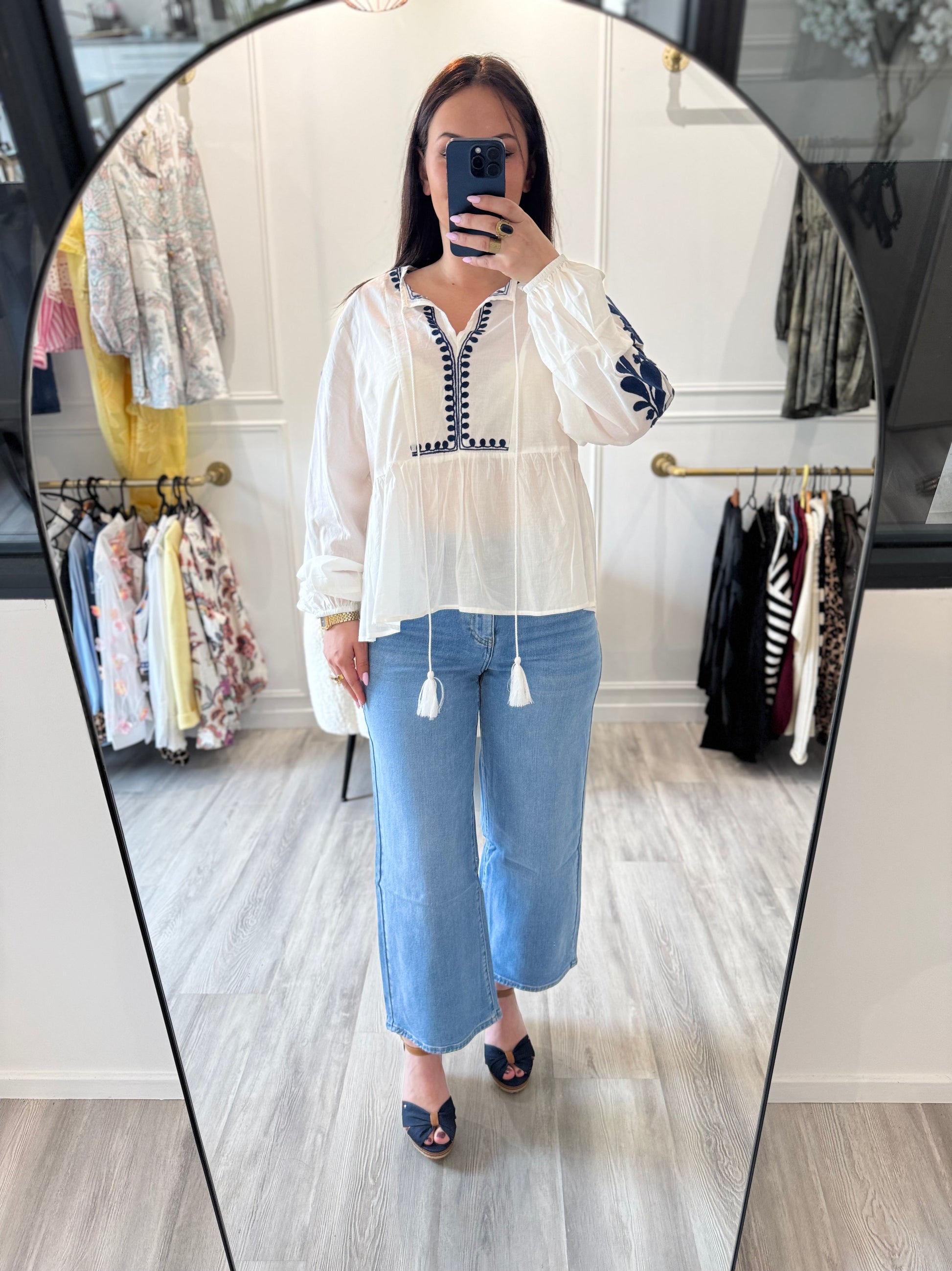 Craquez pour cette blouse bohème au charme authentique ! Son tissu léger et fluide, agrémenté de broderies délicates, vous assure un look confortable et détendu.